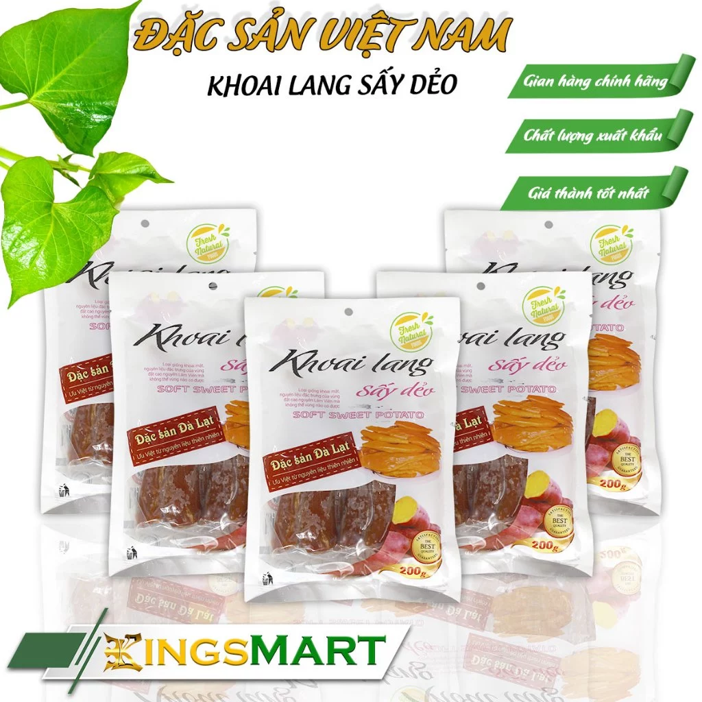 🔥 [Siêu tiết kiệm] Combo 5 Khoai lang mật sấy dẻo -Thương hiệu NGÔ MAI HOA – Đặc sản Đà Lạt – Túi 200g – Kingsmart đang giảm giá!
